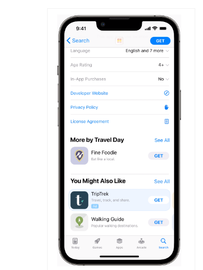 在品牌建立知名度时,吸引潜在的新用户至关重要。“Today”页面广告投放允许营销人员进一步分散广告预算,以提高应用产品的知名度。