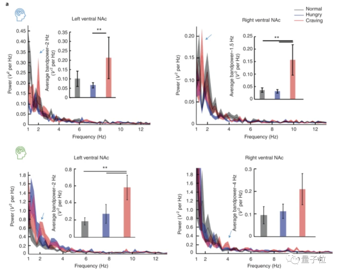 测试数据显示,当被试遇到他们很喜爱的食物时,大脑中NAc的低频振荡功率明显升高。
