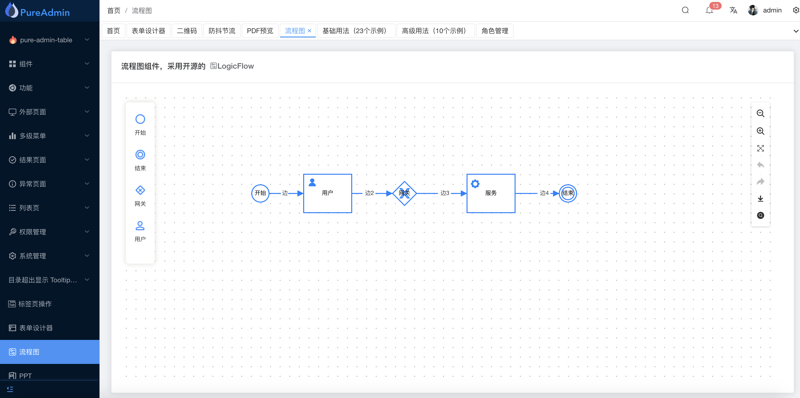 在线网址:https://yiming_chang.gitee.io/vue-pure-admin/#/login