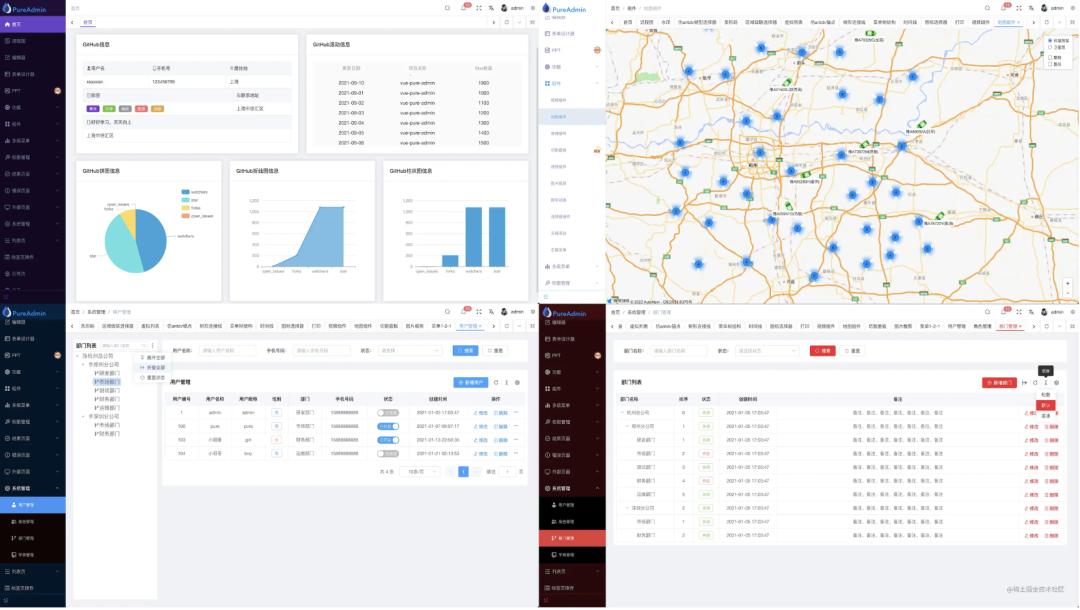 vue-pure-admin 是一款开源免费且开箱即用的中后台管理系统模版。使用了最新的 Vue3、Vite、Element-Plus、TypeScript、Pinia、Tailwindcss 等主流技术开发
