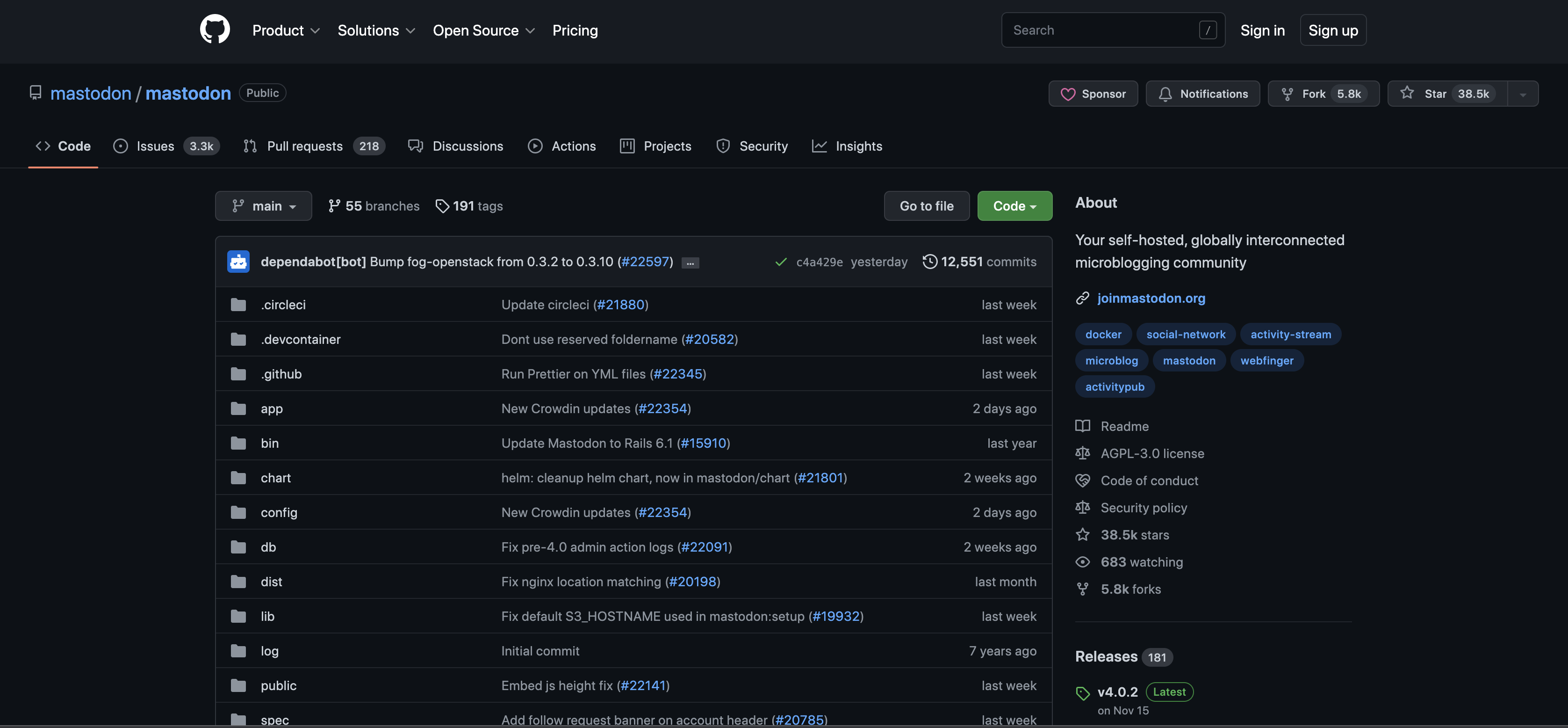 这是一个开源的分布式社交网络平台。它使用 Ruby on Rails 框架开发,提供了微博类似的功能,如发布消息、关注其他用户、标签等。