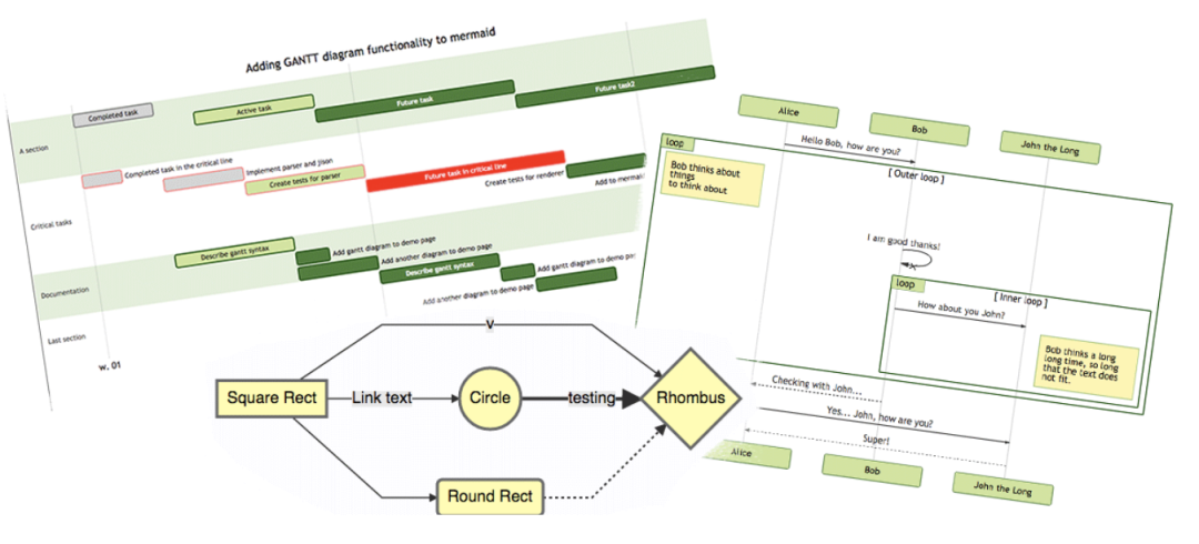 这是一个用于绘制流程图、甘特图和其他图表的库。它使用简单的语言描述图表的布局和元素,并自动生成对应的图像。