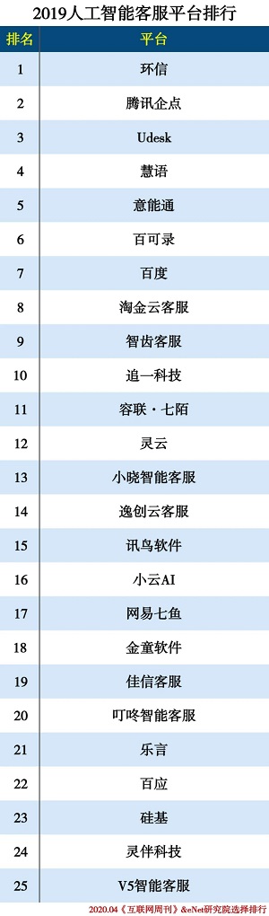 近日,《互联网周刊》研究院发布2019人工智能分类排行,其中环信凭借领先的AI算法能力、完善的AI工程能力,以及包括在保险、证券、金融、教育、物流等行业的头部客户占比优势,荣膺智能客服行业榜首。