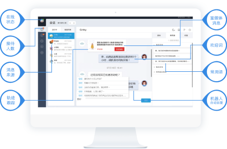 首先,在这种专业的高密度沟通场景下,一定要用专业的客服效率工具,比如环信客服工作台。下面是一个典型的环信客户工作台的示意图,你可以看到,这里有几十项工具,包括快捷回复、人机协作等,它们被设计出来的唯一目的就是让你回答访客的问题更快速更高效!