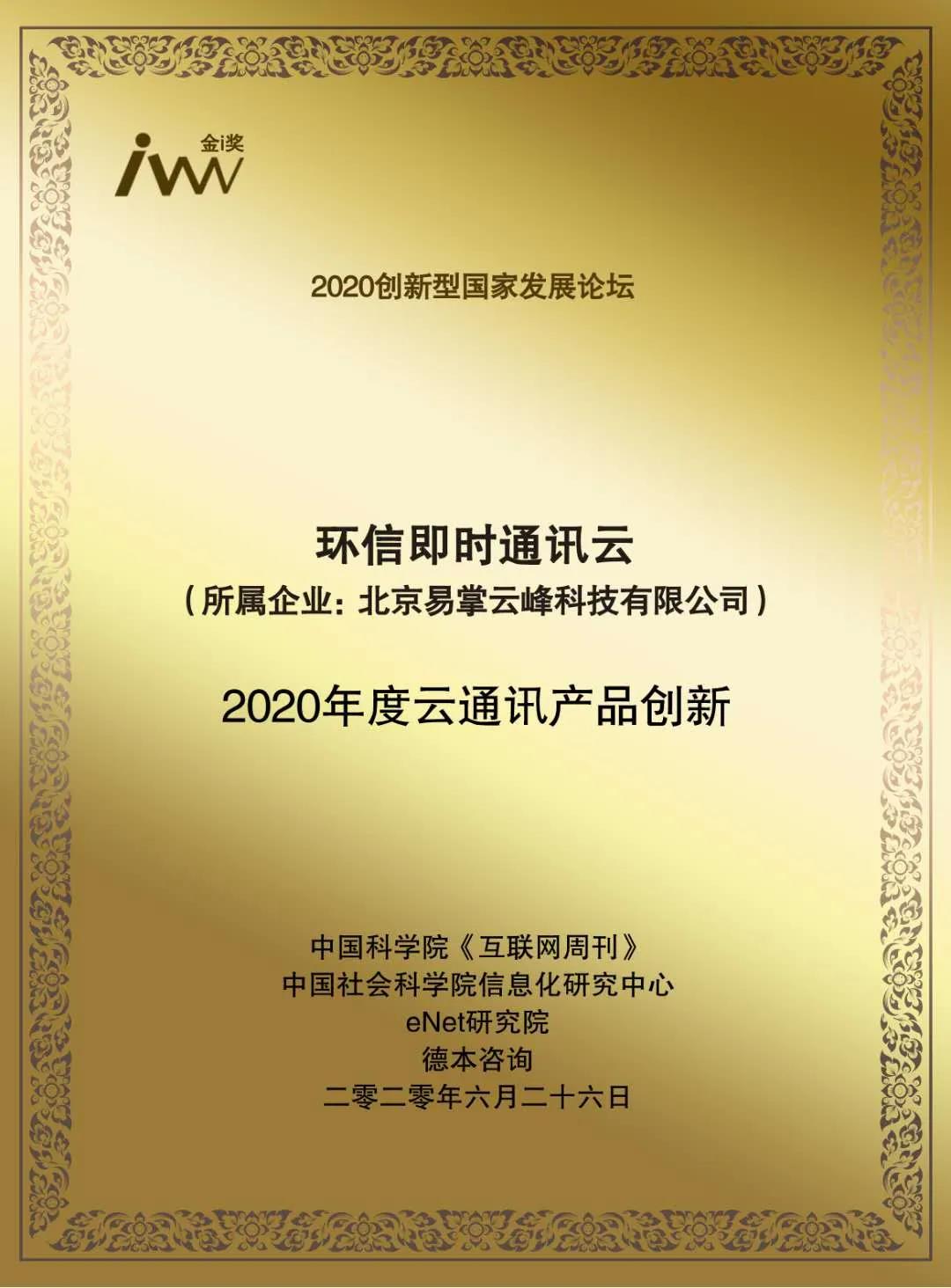 自立者人恒立之,自助者天助之!截至2019年环信即时通讯云服务了近40万开发者,30万APP,获得了众多世界500强客户的认可,也得到了各种权威机构、媒体的充分肯定,在最近结束的“2020创新型国家发展论坛”上,环信即时通讯云荣获《2020年度云通讯产品创新奖》,一步一步夯实了中国即时通讯云服务商的领军地位。