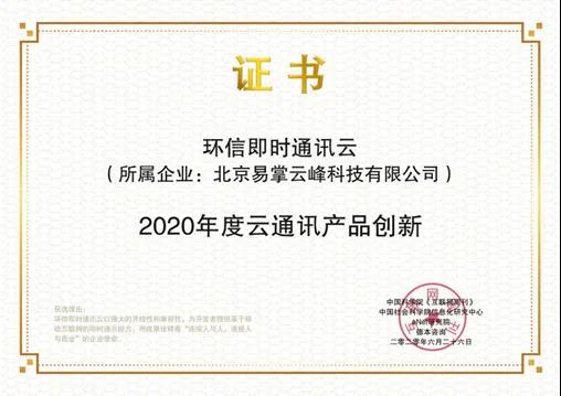 近日,2020创新型国家发展论坛暨《2020企业创新发展白皮书》线上发布会顺利召开,同时揭晓表彰了2019-2020年各重要行业、细分领域中的杰出企业及创新案例。作为中国叫早叫大的即时通讯云服务商,环信凭借其持续的创新产品力荣膺「2020年度云通讯产品创新奖」。