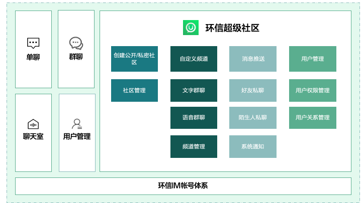 环信超级社区是一款基于环信IM+声网RTC打造的类Discord实时社区应用,用户可创建/管理自己的兴趣社区,设置/管理频道(群组),支持陌生人/好友单聊、社区成员无上限,可创建的频道数无上限,用户加入的频道数无上限,真正实现万人实时群聊,语音聊天等。