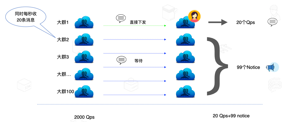 解决方案:通过notice减少消息的Qps,进群后再拉取下发消息