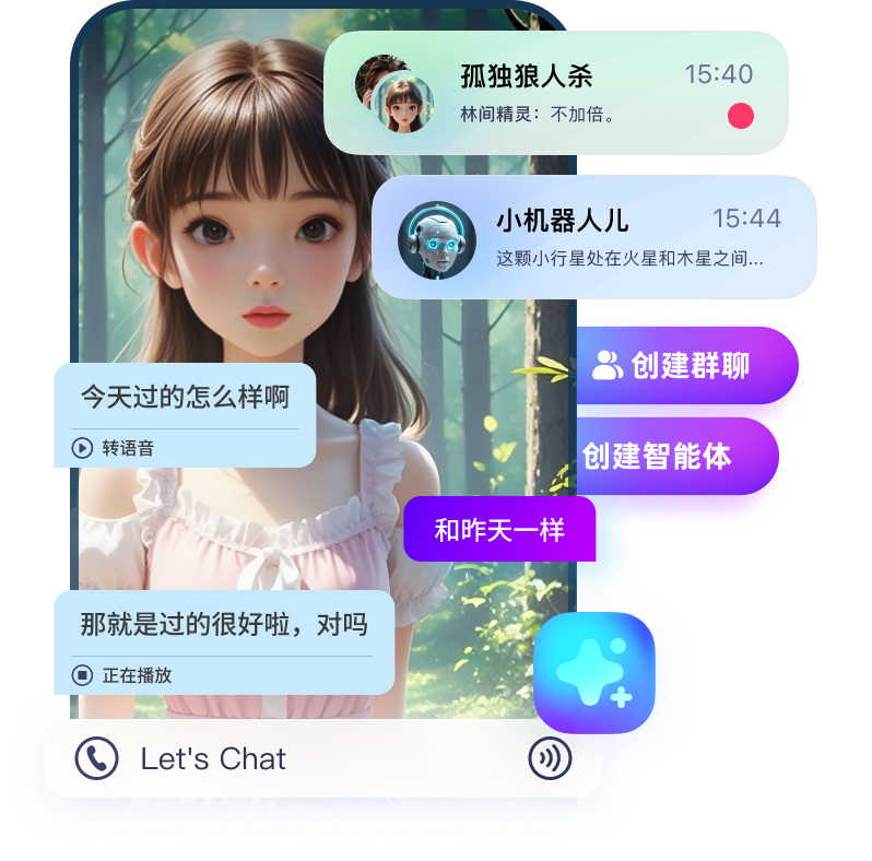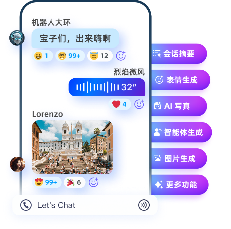AIGC 结合 IM 能力可定制特定人物性格的 AI陪伴者。提供即时的情感支持与个性化体验,创造更加新颖的社交体验。