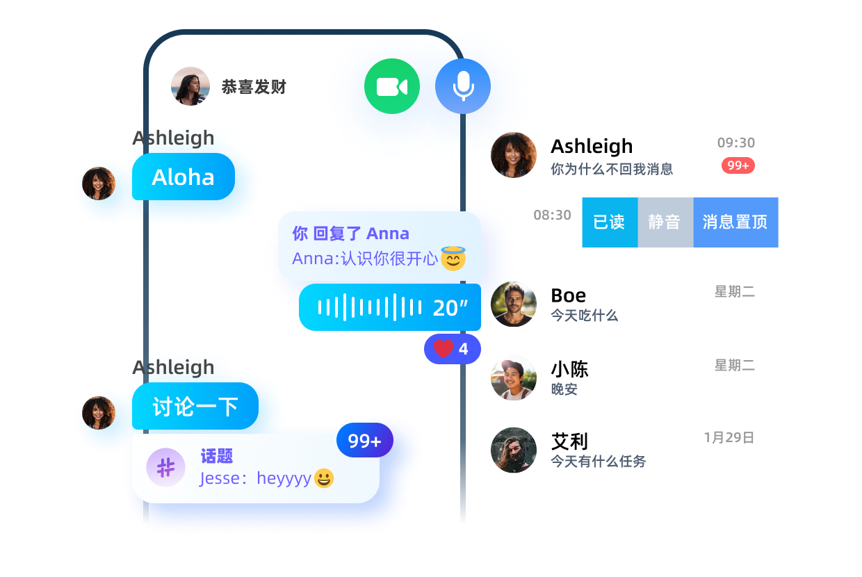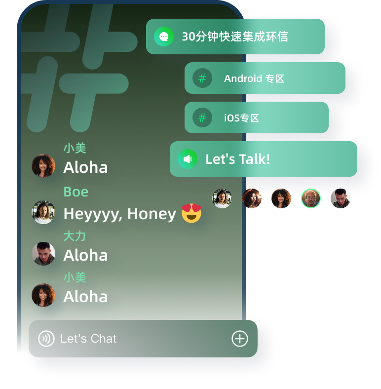 即时通讯 IM 支持单聊、群聊、聊天室,提供完整 IM 即时通讯能力。提供多端体验 DEMO,方便开发者快速集成使用